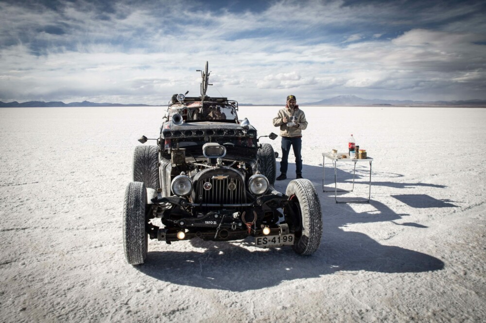 Distant cousins of the mutant characters of the Mad Max films, one sees them most commonly in the early morning, cigarette and coffee at hand, gaunt faces shining from motor grease, the sand and reflections of the sun on the car body.